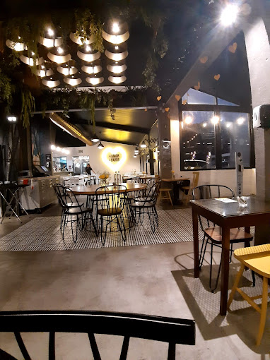 Es un lugar relajado, informal, con muy buen ambiente, amable servicio y buena música de fondo. Un espacio muy agradable para una tarde con amigos. Este restaurante tiene un horario de 8:00 a.m. – 12:00 a.m.