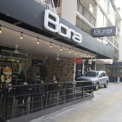 Bora es un restaurante con una amplia carta desde comida venezolana como cachapas (arepas de choclo), platos americanos (hamburguesas) , italianos(pizzas y pastas) y cocina latina en general.